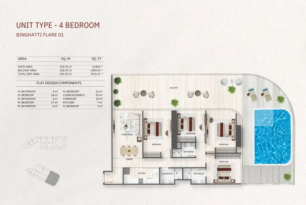 Set within one of Dubai’s most well-connected suburban districts, Binghatti Flare offers a collection of studio, 1, 2, 3, and 4-bedroom apartments, all crafted with attention to detail and a focus on quality living. The project reflects Binghatti’s signature architectural style, bold façades, spacious balconies, and design elements that balance aesthetics with practicality.