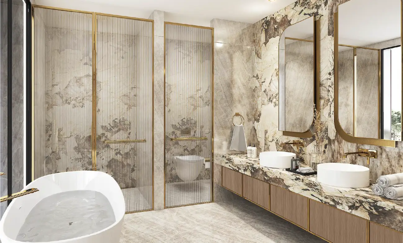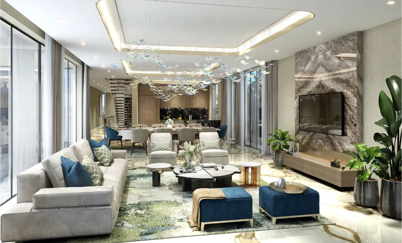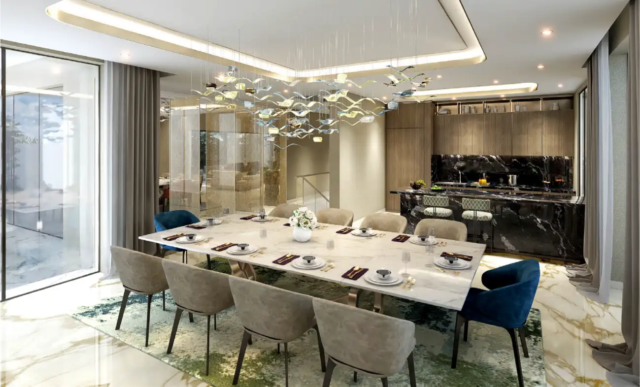 The development features elegant 4 and 5-bedroom townhouses paired with grand 6 and 7-bedroom villas. Each residence is crafted with expansive interiors, seamless indoor–outdoor layouts, and floor-to-ceiling glass that frames lush views. Private terraces, landscaped outdoor areas, and modern finishes create a calming environment ideal for both entertainment and everyday living.