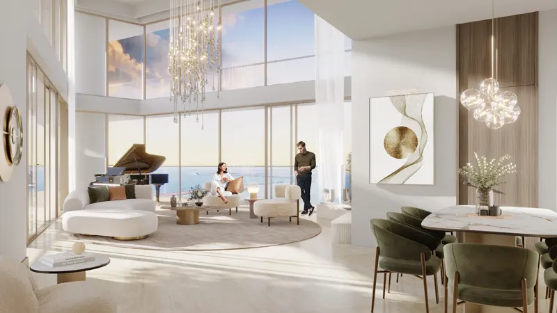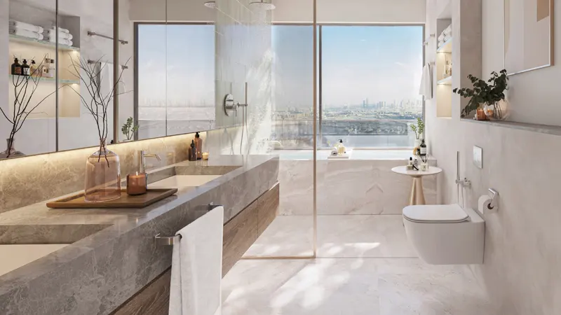 Many residences feature generous balconies or terraces that offer uninterrupted views of the Arabian Gulf, Dubai skyline, and surrounding marina, creating a sense of space, light, and openness.
